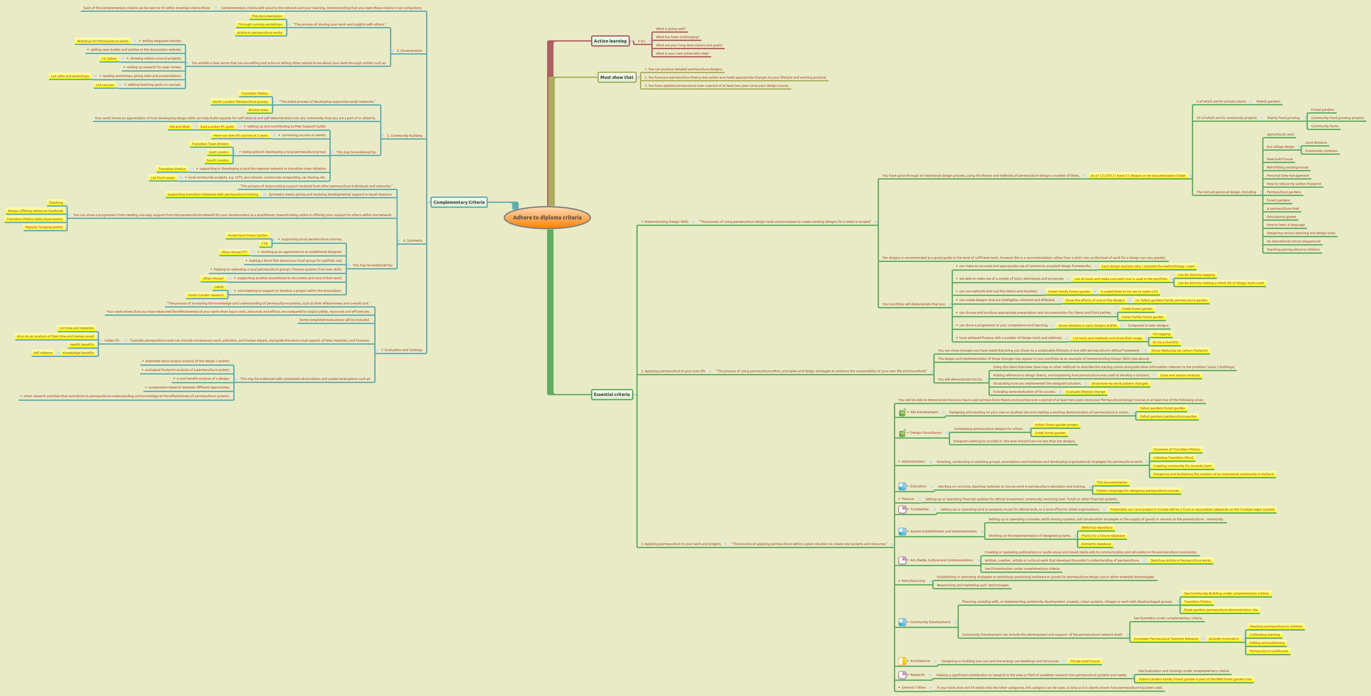 Bearing in mind the documentation has two output objectives, namely making documentation to show students, while also adhering to the diploma criteria. So to facilitate this, I looked at each section of the diploma criteria, so I could identify which areas I am already working in. I then listed some of my designs, which easily fit into the criteria.